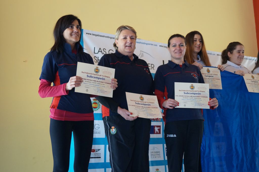 Pero si en precisión se obtuvieron unos muy buenos resultados, en el campeonato de España de Standard y Velocidad Aire las damas lo bordaron, así sus tiradoras lograrían la medalla de plata por equipos en las dos ocasiones posibles, si en standard aire lo hicieron bien en velocidad aire lo harían mejor. Destacar el excelente resultado de Isabel con dos medallas de plata conseguidas en ambas modalidades. Los puestos conseguidos serían los siguientes: